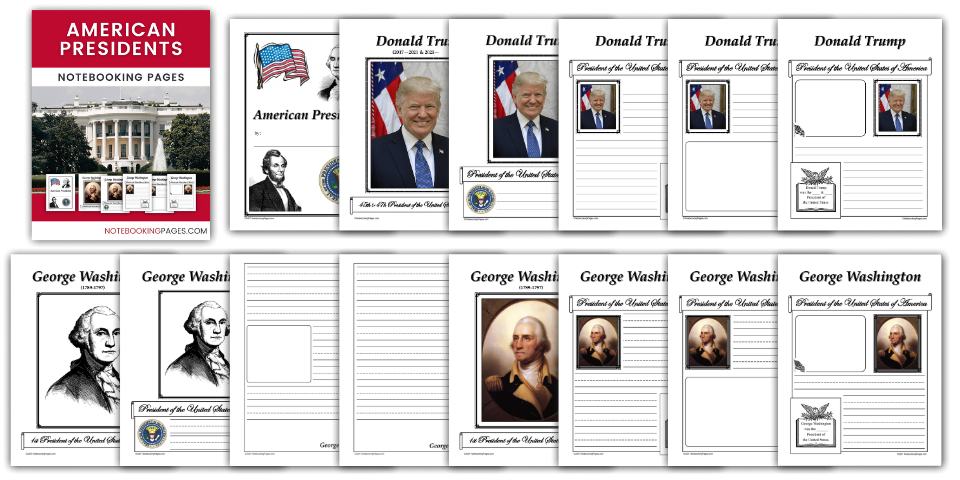 Notebooking pages for each American President from George Washington to Donald J. Trump.