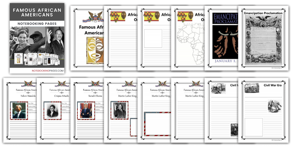 Notebooking pages for nearly 30 famous African Americans plus blank templates to add your own. Also includes themed pages for African origins, Civil War era, and African American history.
