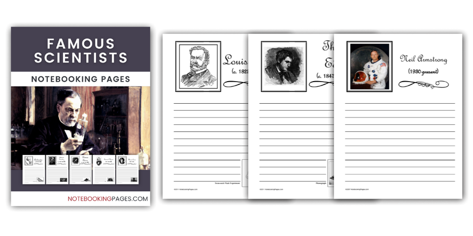 Notebooking pages for 15 famous scientists plus blank templates to add your own.